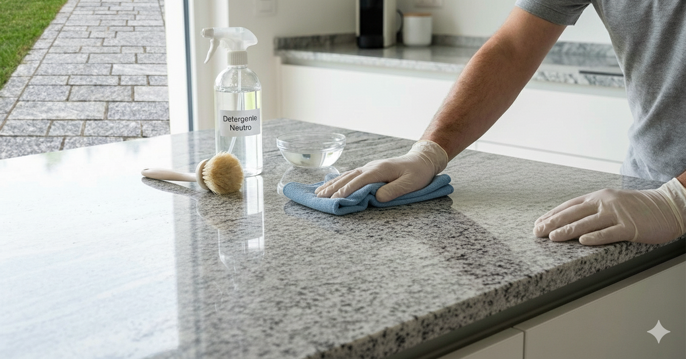 Il granito è una delle pietre naturali più apprezzate e utilizzate in edilizia e nell'arredamento domestico grazie alla sua straordinaria resistenza, durabilità e bellezza estetica. Il granito sardo , in particolare, rappresenta un'eccellenza riconosciuta a livello internazionale per le sue caratteristiche tecniche superiori e le sue venature uniche che spaziano dal bianco perlato al grigio, dal verde al nero intenso. Questa pietra naturale è ideale sia per ambienti interni – come piani cucina, bagni, scale e pavimenti – sia per esterni, dove viene impiegata per soglie, pavimentazioni, rivestimenti e arredi urbani. Tuttavia, per preservare nel tempo la sua brillantezza originale e le sue prestazioni funzionali, è fondamentale adottare una corretta manutenzione ordinaria e straordinaria. In questo articolo scoprirai i consigli pratici degli esperti per prenderti cura del granito della tua casa, dal piano di lavoro della cucina alla soglia di ingresso, con un focus specifico sulla pulizia delle superfici bocciardate. Pulizia quotidiana: semplicità ed efficacia La manutenzione ordinaria del granito non richiede procedure complesse, ma è essenziale utilizzare prodotti e strumenti appropriati. Per la pulizia giornaliera delle superfici in granito, come il piano cucina , è sufficiente utilizzare un panno morbido in microfibra inumidito con una soluzione di acqua tiepida e sapone neutro o detersivo delicato per piatti. La procedura corretta prevede di: Rimuovere briciole e residui con un panno asciutto o una spazzola morbida Passare il panno imbevuto di soluzione detergente su tutta la superficie Risciacquare con un panno pulito inumidito con acqua Asciugare accuratamente con un panno asciutto per evitare aloni e depositi calcarei Per le soglie esterne in granito, il procedimento è simile: spazzare via polvere e detriti, lavare con acqua e detergente neutro utilizzando una spazzola a setole morbide, quindi risciacquare abbondantemente. Cosa evitare assolutamente nella manutenzione del granito Uno degli errori più comuni nella manutenzione del granito è l'utilizzo di prodotti inadeguati che possono danneggiare irreversibilmente la superficie. Evita categoricamente: Prodotti acidi come aceto, limone, anticalcare generici o sgrassatori aggressivi: anche se il granito è più resistente del marmo agli acidi, l'esposizione ripetuta può opacizzare la lucidatura e danneggiare il trattamento protettivo Candeggina pura o ammoniaca concentrata : possono alterare la struttura superficiale della pietra Pagliette metalliche o spugne abrasive : graffiano irrimediabilmente la superficie lucida Detergenti generici per pavimenti : spesso contengono sostanze alcaline o acide non idonee Per eliminare il calcare da rubinetti o macchie d'acqua, utilizza esclusivamente detergenti neutri specifici per pietre naturali o prodotti professionali anticalcare a PH neutro, disponibili presso rivenditori specializzati. Rimozione delle macchie difficili dal granito Anche il granito, sebbene poco poroso, può macchiarsi se liquidi pigmentati (olio, vino, caffè, succhi) rimangono a lungo sulla superficie non trattata. Ecco come intervenire: Per macchie di olio o unto: Prepara una pasta densa con bicarbonato di sodio e acqua, applicala sulla macchia, copri con pellicola trasparente e lascia agire per 12-24 ore. Rimuovi delicatamente con un panno umido e risciacqua. Per macchie di vino, caffè o succhi: Utilizza una pasta di bicarbonato e perossido di idrogeno (acqua ossigenata), applicala sulla macchia, lascia agire alcune ore e rimuovi con acqua pulita. Per macchie organiche o grasse persistenti: Rivolgiti a un professionista per un intervento di pulizia profonda con prodotti specifici che non danneggino la pietra. Pulizia del granito bocciardato: tecniche specifiche Il granito bocciardato si distingue per la sua superficie irregolare, ruvida e antiscivolo, ottenuta mediante martellatura meccanica che crea piccole cavità. Questa finitura è particolarmente apprezzata per pavimentazioni esterne, scale, rampe e bordi piscina proprio per le sue proprietà antiscivolo. La superficie bocciardata richiede accorgimenti particolari durante la pulizia, poiché le asperità tendono ad accumulare sporco, terra e detriti: Rimozione dei detriti: Utilizza una scopa con setole rigide o una spazzola dura per eliminare polvere, foglie e terra dalle micro-cavità superficiali Lavaggio: Prepara una soluzione di acqua calda e detergente neutro, quindi spazzola energicamente la superficie con una spazzola a setole dure, insistendo sulle zone più sporche Risciacquo: Risciacqua abbondantemente con acqua pulita, assicurandoti di rimuovere ogni traccia di detergente Asciugatura: Lascia asciugare naturalmente all'aria o tampona con stracci assorbenti Per il granito bocciardato esterno è particolarmente importante applicare periodicamente un trattamento idrorepellente che penetra nei micropori, protegge dagli agenti atmosferici, previene la formazione di muschi e facilita le pulizie successive. Trattamenti protettivi: quando e come applicarli Anche se il granito è naturalmente resistente, l'applicazione di un sigillante o impermeabilizzante è fondamentale per chiudere i micropori naturali della pietra e prevenire l'assorbimento di liquidi, sporco e umidità. Come capire se il granito necessita di trattamento: Esegui il test della goccia d'acqua : versa alcune gocce d'acqua sulla superficie. Se l'acqua forma una perlina e scivola via, il trattamento è ancora efficace. Se invece l'acqua viene assorbita lasciando un alone scuro, è il momento di rinnovare il sigillante. Frequenza consigliata: Per superfici interne (cucine, bagni): ogni 1-3 anni a seconda dell'uso Per superfici esterne (soglie, pavimenti): ogni 12 mesi Il trattamento va applicato su superficie perfettamente pulita e asciutta, seguendo le indicazioni del produttore del sigillante specifico per granito. Le qualità uniche del granito sardo Il granito sardo è rinomato no
